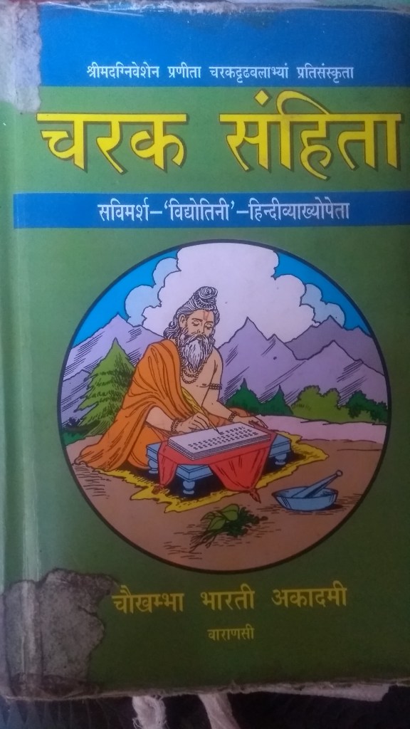 The Charaka Samhita (latest edition shown on right) is believed to have arisen around 400-200 BCE. It is felt to be one of the oldest and the most important ancient authoritative writings on Ayurveda. It is not known who this person was or, if indeed, this represents the work of a “school of thought.” It could have been from a group of scholars or followers of a man known as Charaka or an original composition from a single person named Charaka. This work is sometimes considered a redaction of an older and more voluminous work, Agnivesha Samhita (46,000 verses), which is no longer extant. Dridhabala, living about 400 AD, is believed to have filled in many verses of missing text (perhaps up to 20%) in the Chikitsasthana and elsewhere, which disappeared over time.